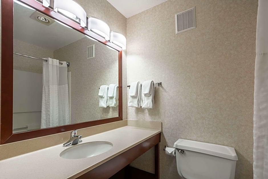 Upon arrival, you'll be greeted by a 24-hour front desk and friendly staff who are ready to assist you. The hotel offers a range of amenities to ensure your comfort and relaxation, including an indoor swimming pool and hot tub where you can unwind after a long day. The spacious and comfortable rooms are equipped with modern amenities such as air conditioning, free WiFi, and a flat-screen TV. Start your day right with a complimentary breakfast offered by the hotel.